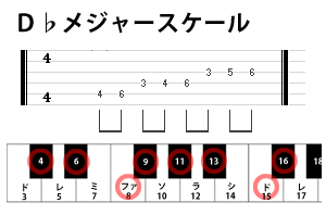 問題は、更に右回りに進んだ時にある、『D♭メジャースケール』です。