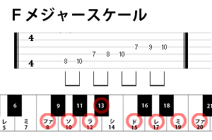 まずはFメジャースケールです。『B(シ)』の音がフラットしています。