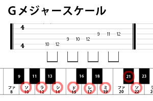 では次にGメジャースケールを見てみましょう。
