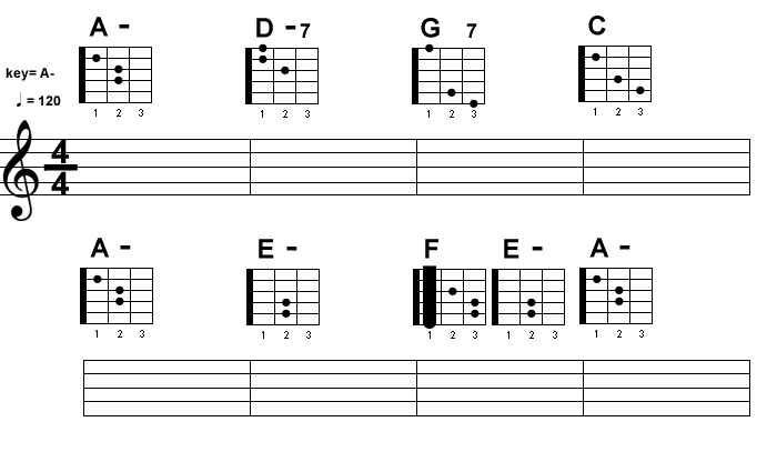 まずは実際にKey=A- のコード進行を弾いてみましょう。