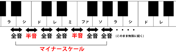 マイナースケールとは何なのかと一言で言うと、Keyの音から始まる