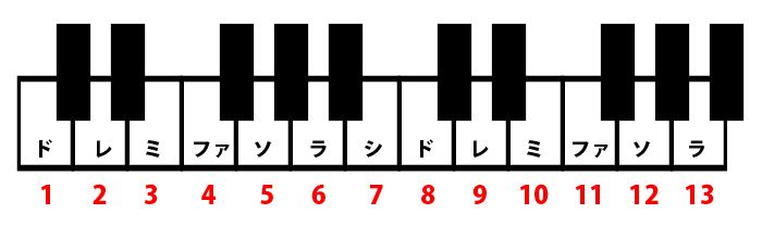 この9とか13という数字は一体何なのかというと、そのコードのルート音から見て、(9)だったら9度上、(13)だったら13度上の音を足す、という事なのです。